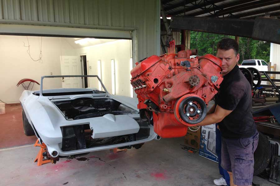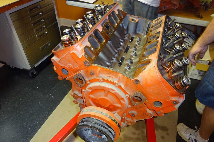 Removal and disassembly of a 1965 Corvette 396 big block Chevy engine in preparation for a refresh rebuild.