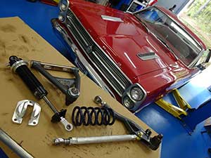 This classic 1966 Fairlane is being updated and modifed. Phase 1 was restomod front suspension rebuild with tubular front suspension. Phase 2 has been the addition of a torque arm and other goodies to the rear suspension including JRI coil overs, and Wilwood brakes.